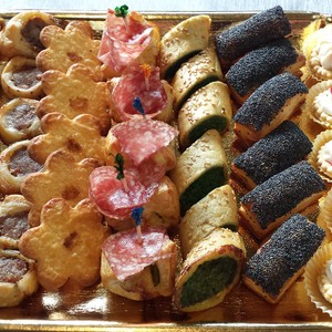 Assortimento di piccola pasticceria salata.